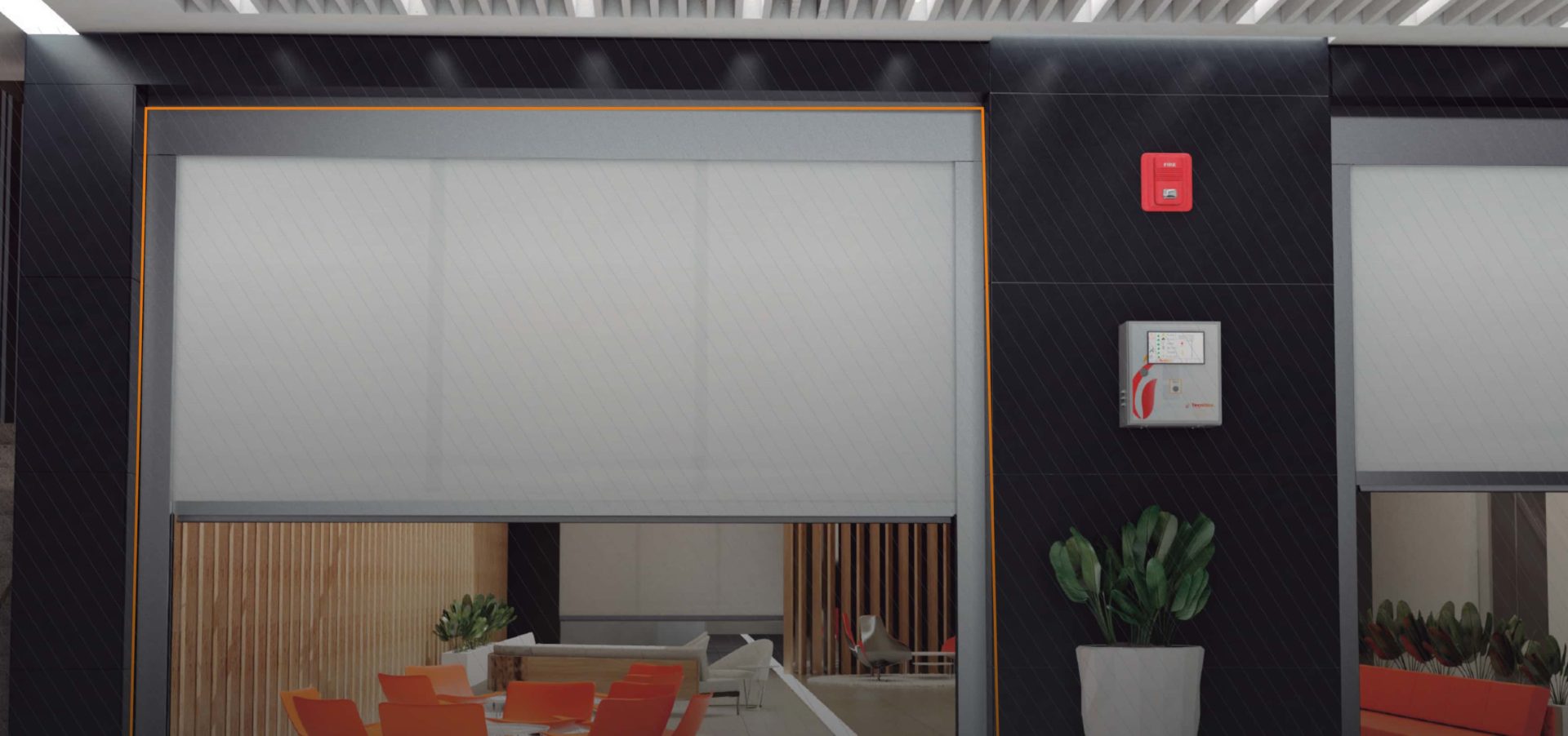 TECNITEX MFB E-120 es una cortina cortafuegos integral con función sectorizadora que garantiza su integridad frente al ataque directo de las llamas o una temperatura superior a 1000°C durante 120 minutos.